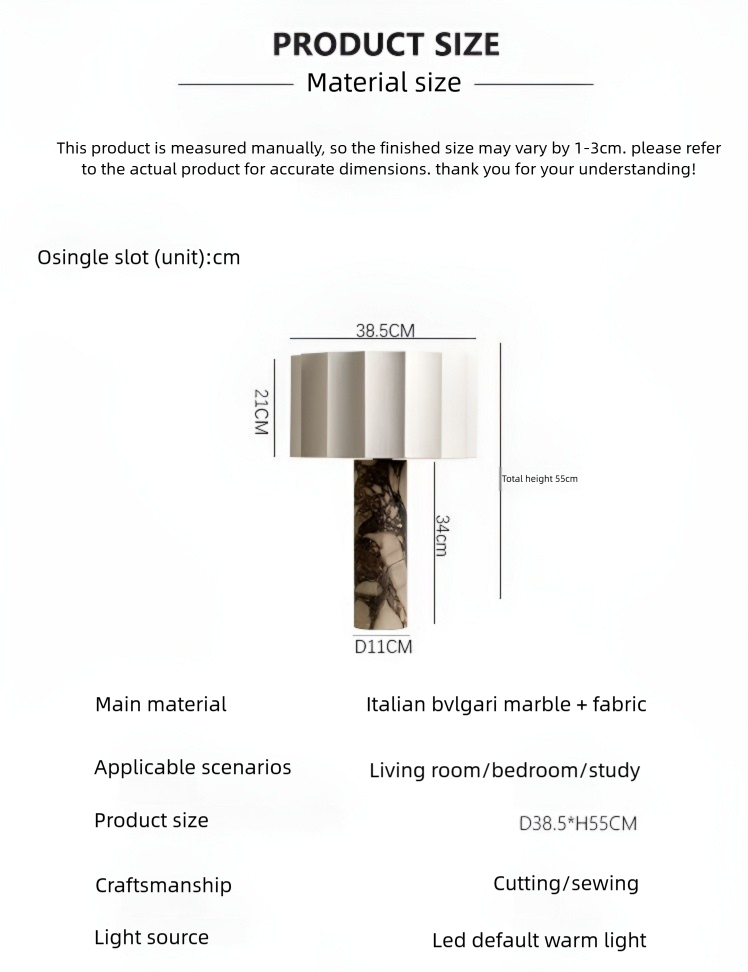 مصباح عمل حرفي من Baiyeco - قاعدة من الرخام الصلب، غطاء قماشي، لمبة، قابس دولي